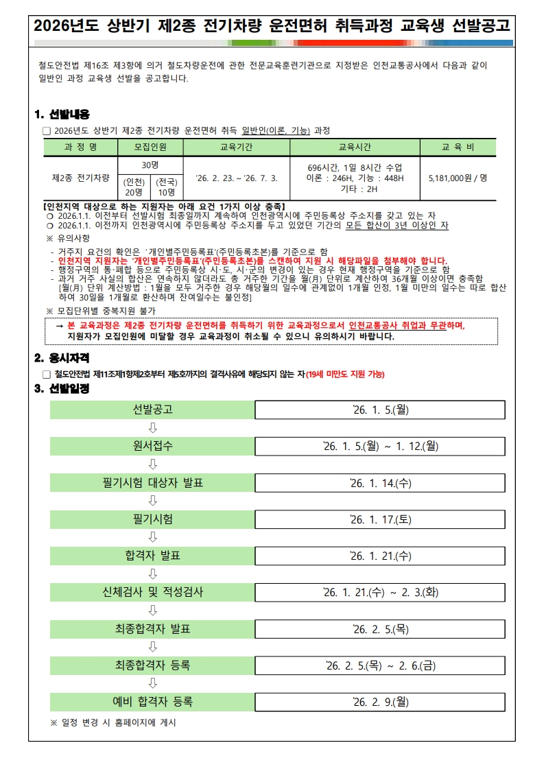 [인천교통공사] 2종 전기차량운전면허 취득과정