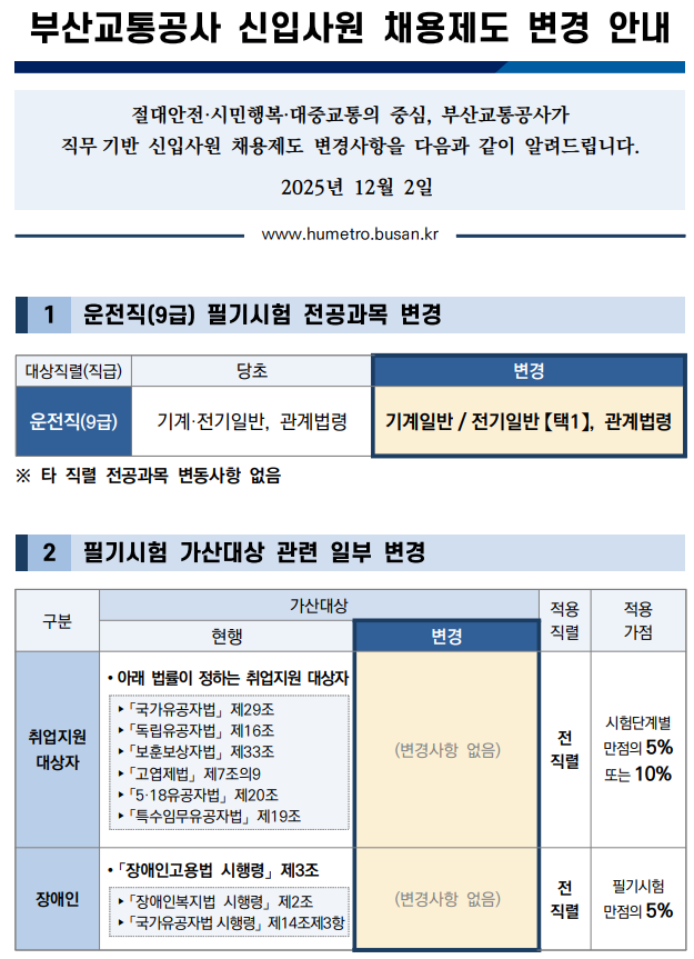 부산교통공사 채용제도 변경 [26년 부터 적용]